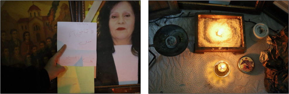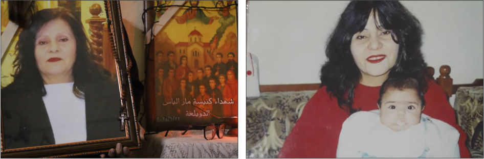 Mary Moussa Barhoum holds a picture of her mother who was killed at the Mar Elias church bombing | Picture Credits: Soha Ezzi