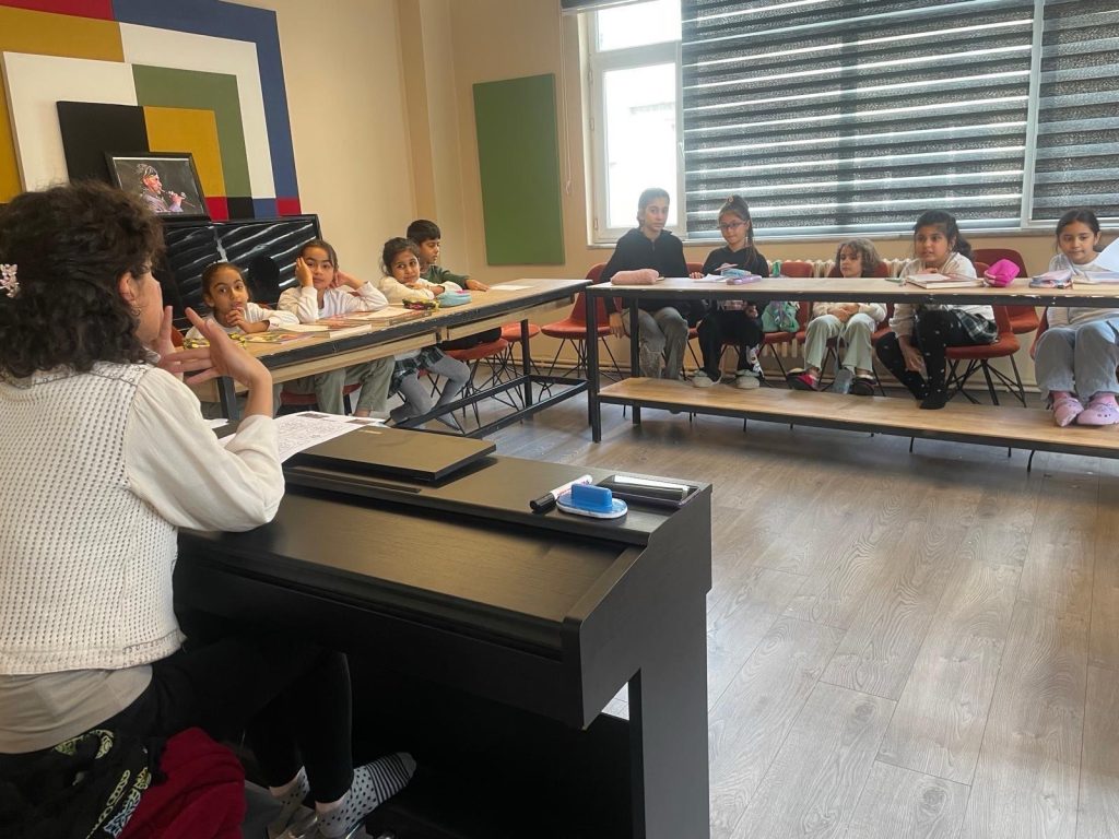 At Ma Music, children start hearing Kurdish music even in the womb. Women can start attending these workshops from the 16th week of pregnancy. Instructors with key pedagogical training play games, teach govend (a Kurdish folk dance), and offer solfège lessons for children aged 0–5. This group, called Zarok Ma (‘children’ in Kurdish), currently studies in a separate school in Amed. In Istanbul, demand for this age group is very high, and they make up half of the student population.