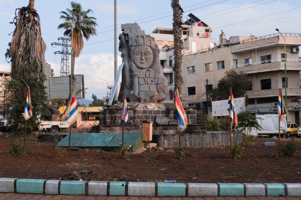 Some traces of the assault were more discreet: at the Tishreen square, in the center of the city, locals had planted six Druze flags, easily identified by their colored stripes representing the five spiritual symbols of the sect. They marked the spot where six brothers of the Saraya family were executed in cold blood.