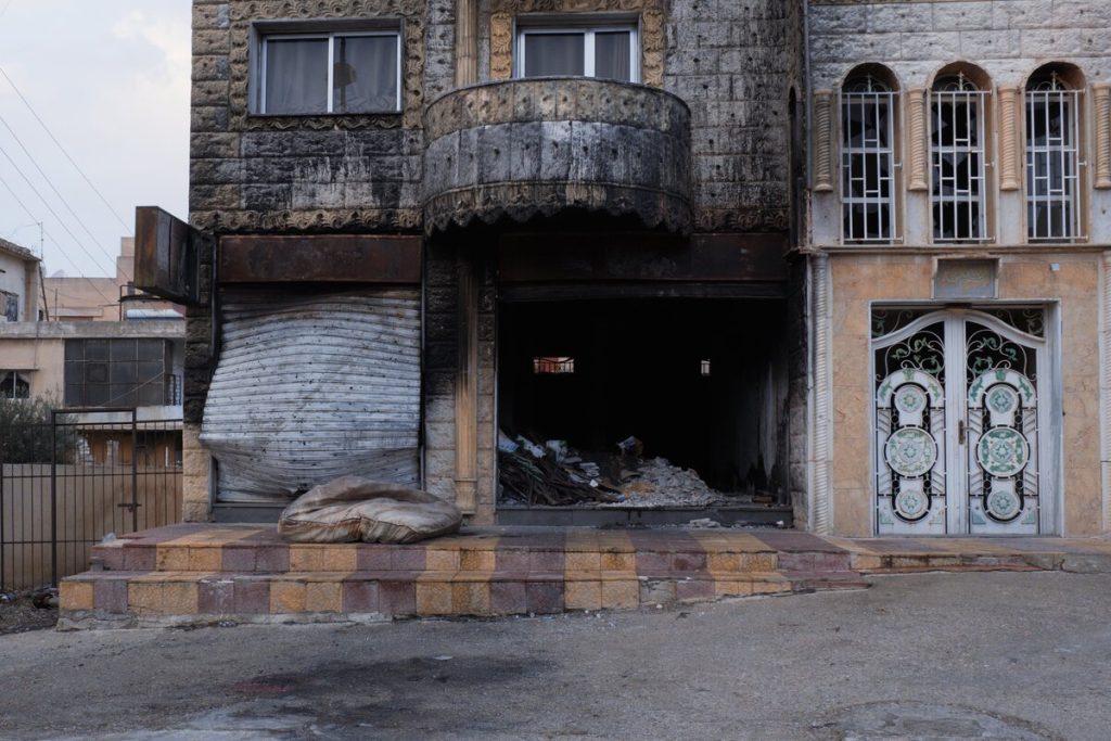 Memorials for the victims, remnants of the General Security forces’ tanks, and burned buildings were all over the city. “They were using incendiary ammunition,” Oraij explained. This method allowed the attackers to set houses ablaze by shooting through the windows from the street.